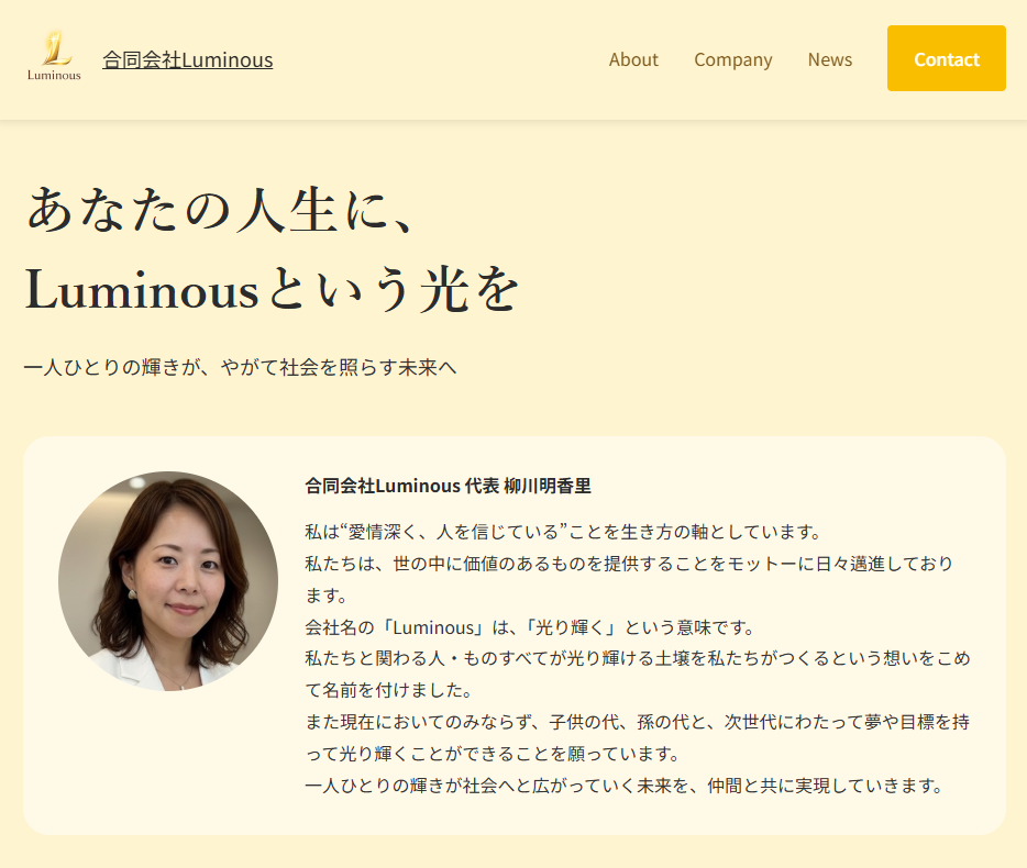 合同会社 Luminous 様のHPリニューアル担当いたしました。
